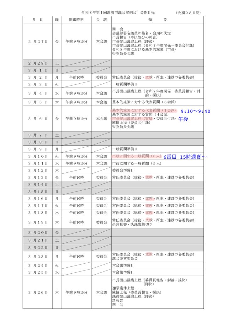 2023年11月20日 / 最終更新日 : 2026年3月14日 kinoshita 次の定例会について 第1回定例会は2月27日(金)に開会します。 3月議会は、新年度予算の審査を行います。 なお、陳情の提出締切は2月20日(金)です。 FacebookXBlueskyHatenaCopy